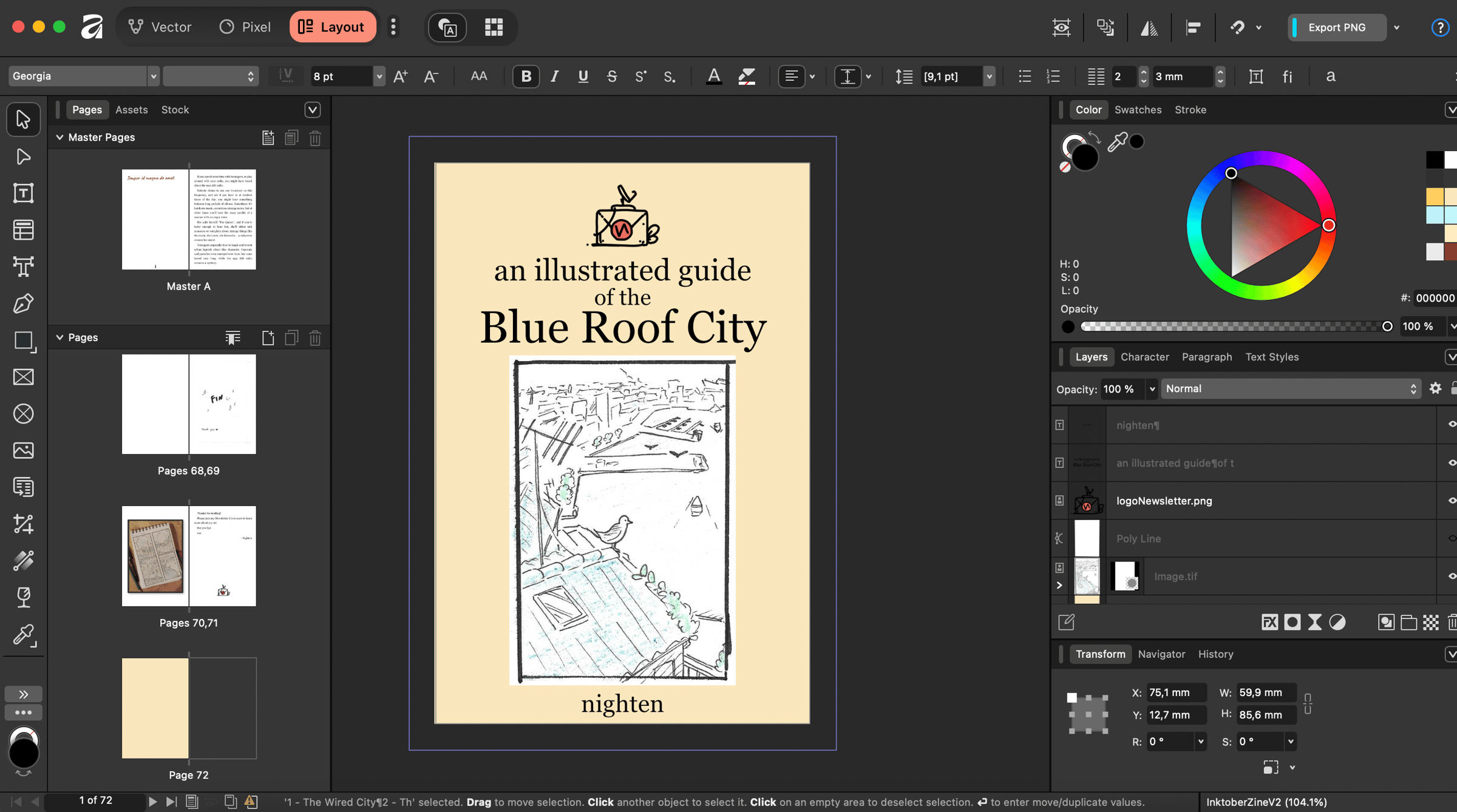 Copy-pasting all the text and images was very tedious, but at the end I was stunned to realize that, with 31 images, the table of contents, intro and outro, the zine is now 70+ pages long!