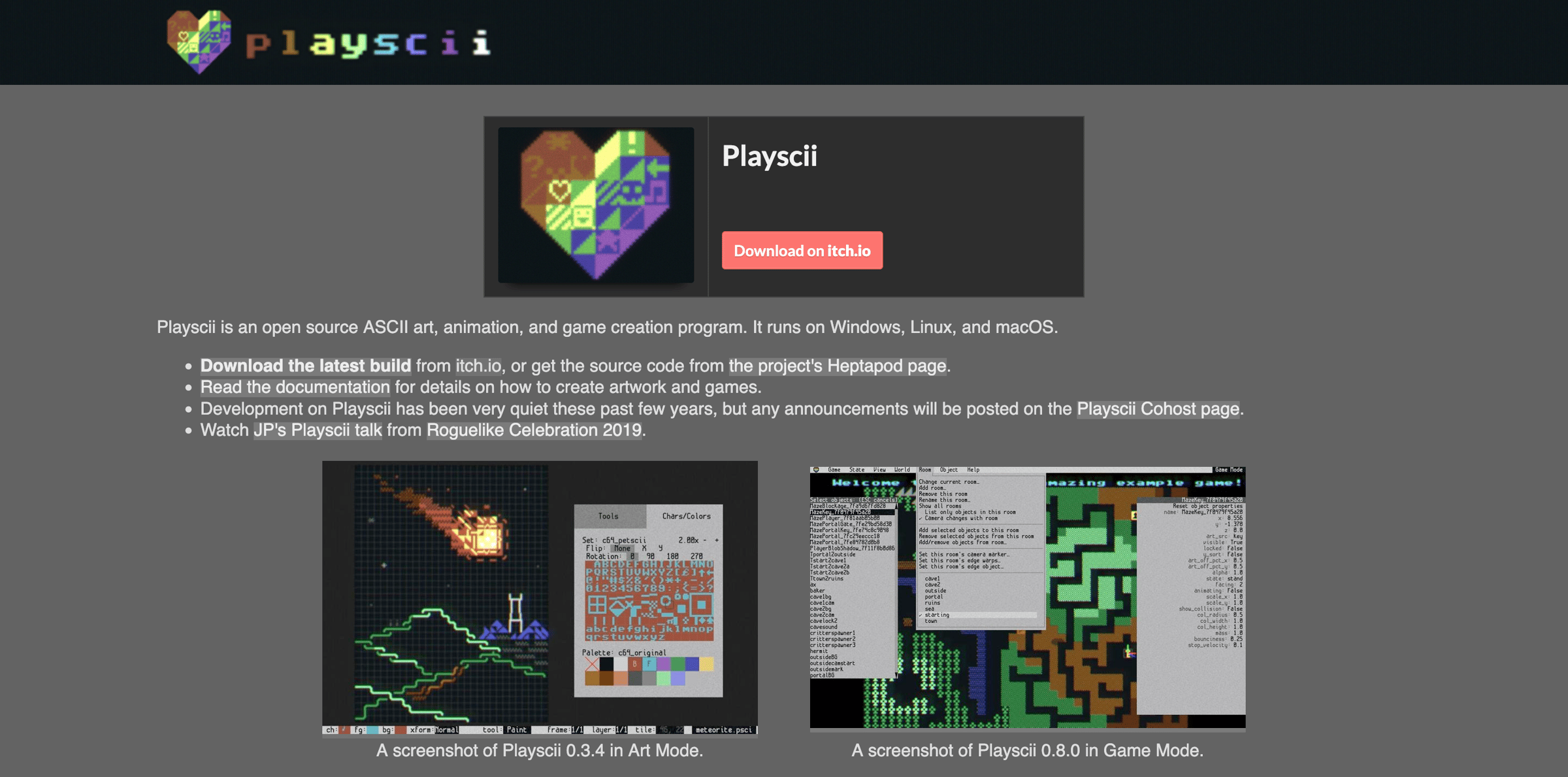 Back in 2020 (what a year this one was!), I started doing art with a software called Playscii. It looks like a pixel art program, but instead of drawing individual pixels, you draw using tiles or monospace characters.