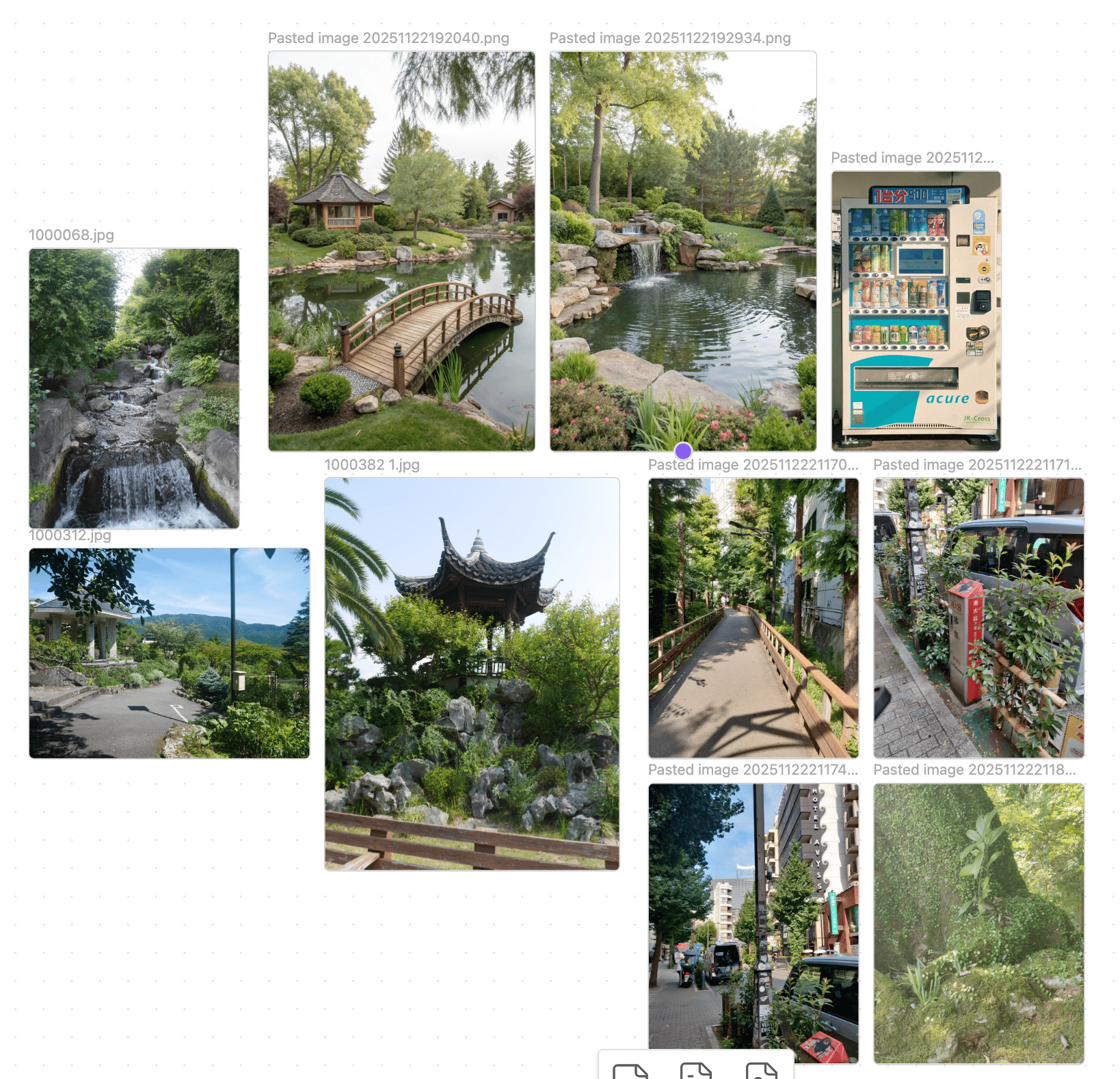 For this illustration I wanted it to be set in one of the parks of my fictional city (the reason will be evident later). I started gathering references, remembering the pictures I took in Japan, with beautiful ponds and vegetation despite the heat.