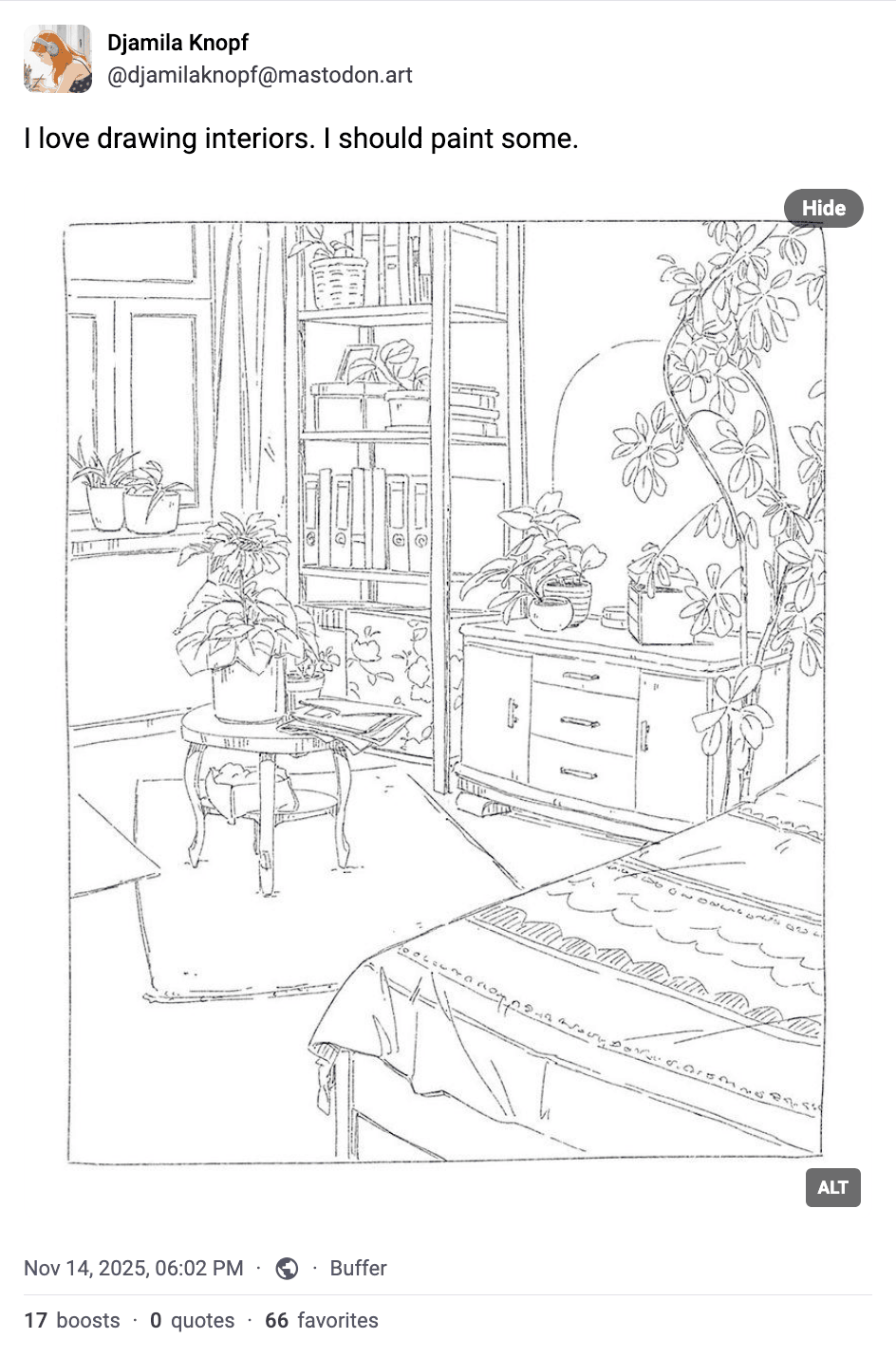 The shallow answer is that for this illustration I want to challenge myself to draw plants with higher fidelity. I’ve been inspired by a few of my fellow artists’ recent posts.
