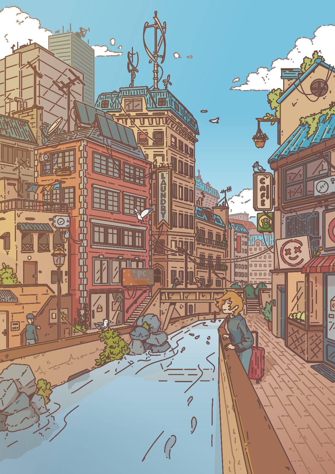 As often, I had some help from my girlfriend with the final colors, and she also suggested adding those white seagulls, which add a lot to how lively the piece feels.