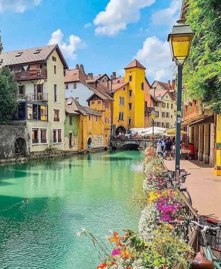 I was first inspired by this picture of Annecy in France, which guided the composition quite strongly.