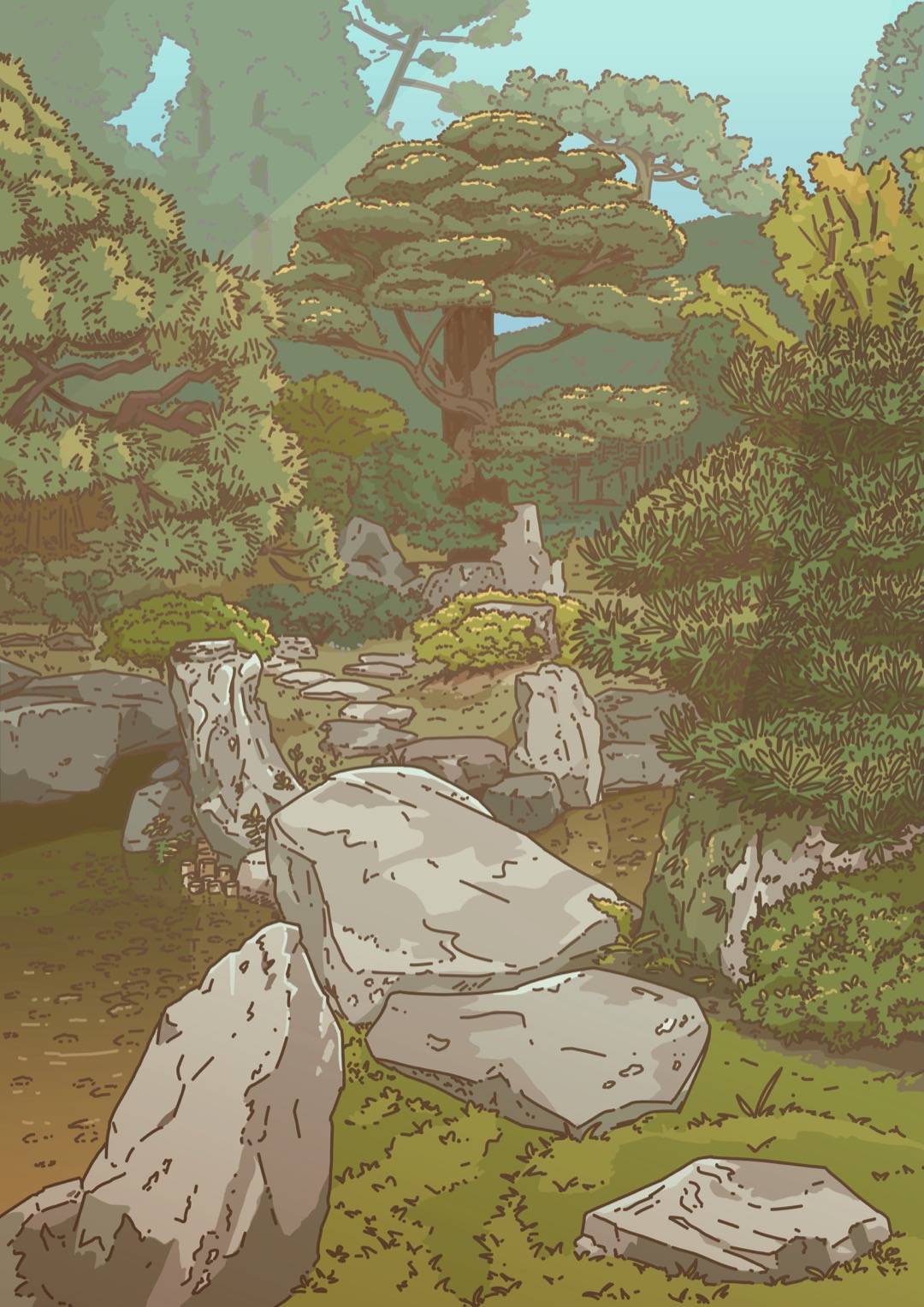 Often it starts with a simple idea, “I want to draw a pond,” or even just “I want to recreate this photo.” But sometimes I have a vague concept in mind and I’m trying to discover what art could come from it (“hope”, “solarpunk” or “bliss”).