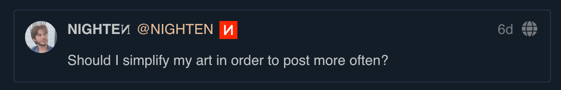 Not that I was seriously considering sacrificing quality for the sake of posting more on social; but I also realize that making art takes me so long that it’s frustrating both for me and maybe also for you. That’s at least what I wanted to learn about!